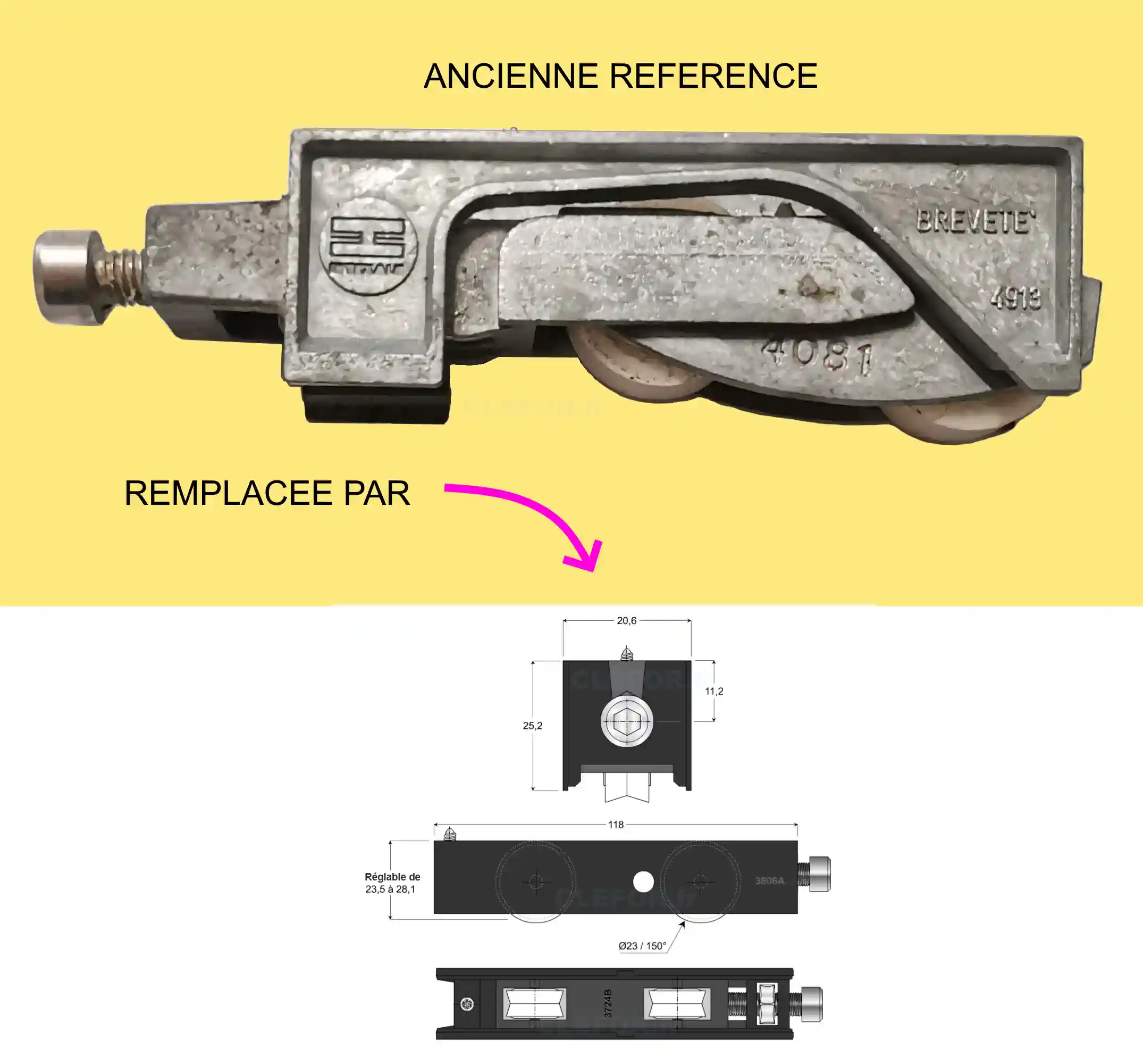 Modèle de remplacement pour support 4913 ou 4917 de chariot 4081