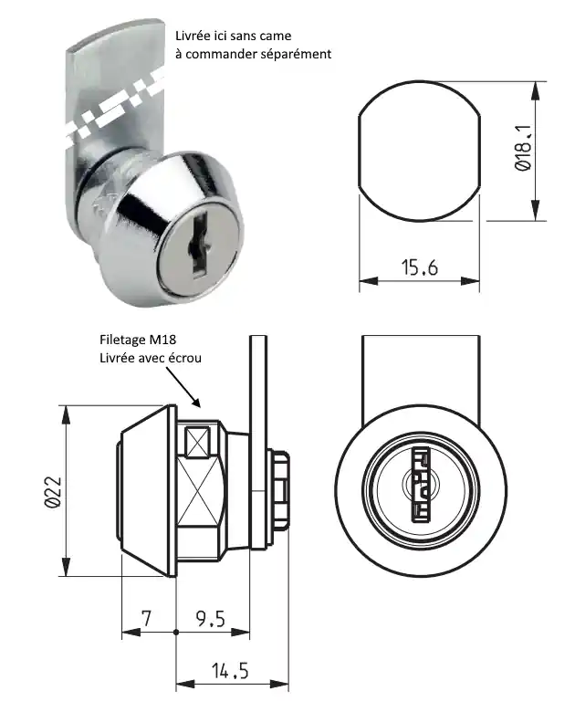 Came DAD ronde diam. 30 mm pour fermeture 3 points