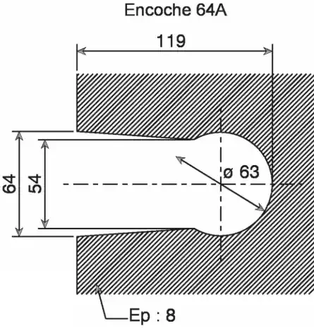 La serrure de milieu pour porte en verre 9745 R se monte sur une encoche 64A sur une porte CLARIT